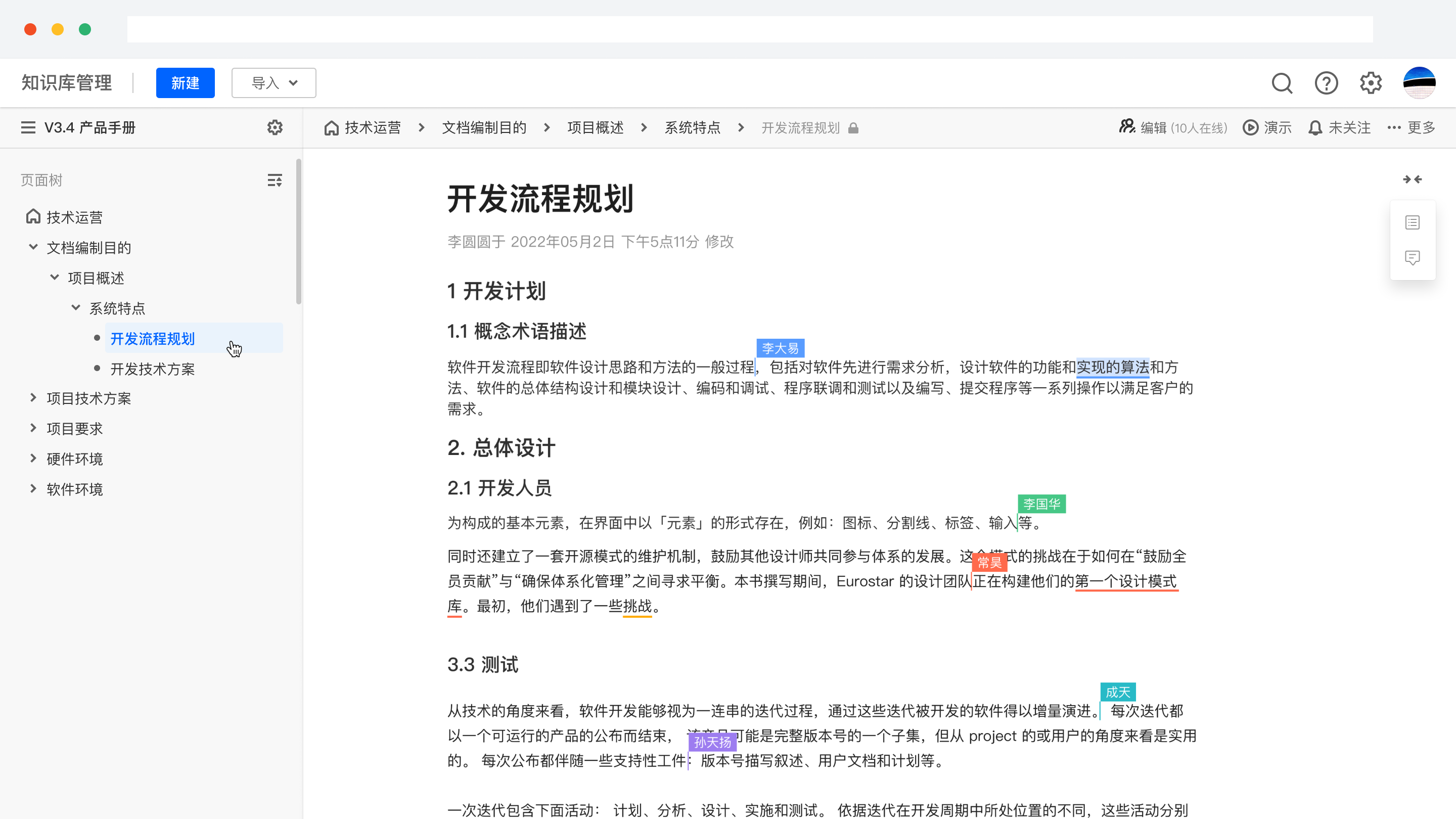 页面树方式组织页面,页面之间的关系一目了然。企业成员看到的内容都是最新版,杜绝企业内部的信息偏差。